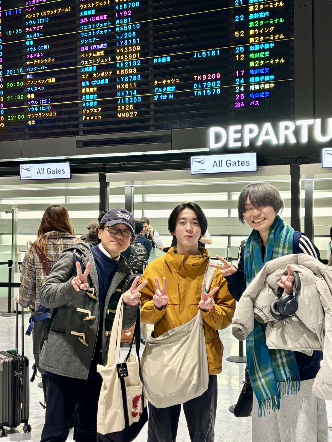 2026/2/8生徒2人がアメリカ カルフォルニアにある音楽大学CALIFORNIA JAZZ CONSERVATORY(以下CJC)に留学するとの事で、成田空港まで見送りしてきました。将来はプロドラマーを目指している2人。夢に向かって頑張って下さい。